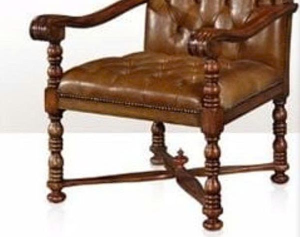 Chiếc ghế armchair phong cách cổ điển mang đến vẻ đẹp quyền quý, sang trọng cho mọi không gian. Được chế tác từ gỗ tự nhiên cao cấp với phần tay vịn và chân ghế chạm trổ tinh xảo, ghế kết hợp đệm bọc da nâu sang trọng, điểm nhấn là tựa lưng chần nút (tufted) tỉ mỉ tạo chiều sâu và đẳng cấp vượt trội.