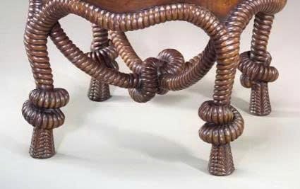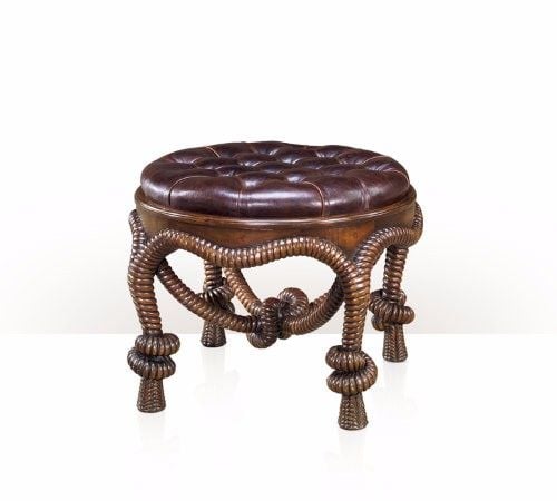 Chiếc ghế đôn cổ điển này mang phong cách độc đáo, lấy cảm hứng từ những nút thắt dây thừng nghệ thuật, tạo nên vẻ đẹp vừa lạ mắt vừa sang trọng.