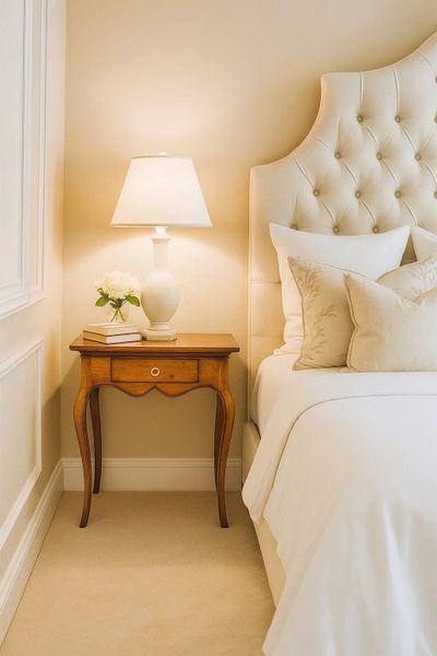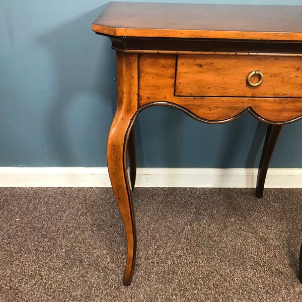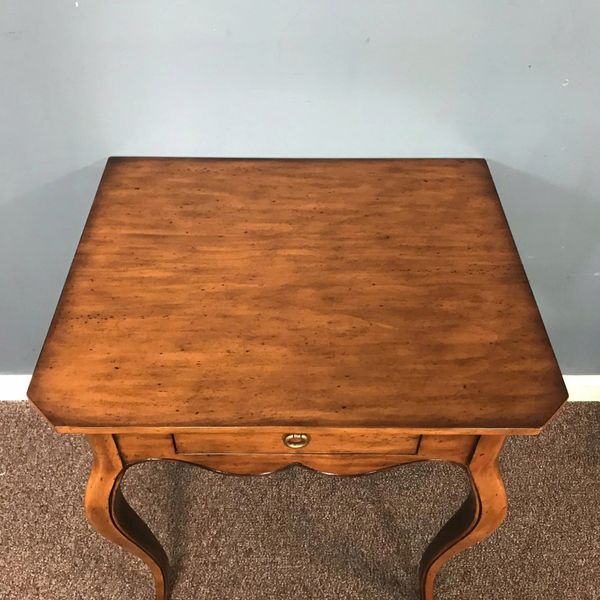 Thiết kế: Bàn có dáng thanh thoát với bốn chân cong mềm mại theo lối cabriole đặc trưng, vừa tạo sự duyên dáng vừa vững chắc. Mép bàn bo nhẹ, mặt bàn phẳng vuông vức, phù hợp để đặt đèn bàn, bình hoa hay làm bàn trà nhỏ.