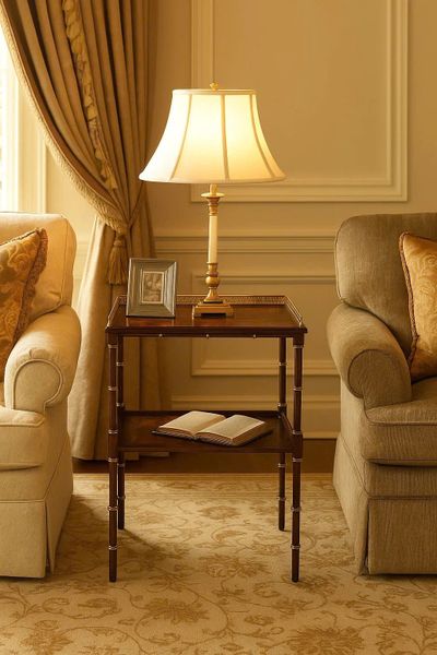2 tầng sử dụng: tầng trên đặt trà, bình hoa, đèn bàn; tầng dưới để sách, tạp chí hoặc đồ trang trí.