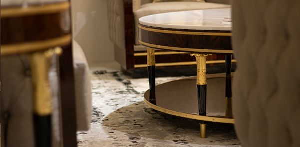 Chân bàn được thiết kế thanh mảnh nhưng đầy chắc chắn, phủ sơn đen huyền bí và chạm khắc mạ vàng tinh xảo, toát lên thần thái quý tộc theo phong cách tân cổ điển Pháp. Kệ dưới rộng rãi, tiện lợi để trưng bày sách, khay trà hay đồ décor.