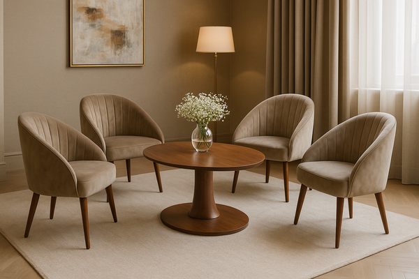 Phần nệm ngồi và lưng tựa được bọc vải nhung cao cấp với chất liệu mềm mịn, êm ái và toát lên vẻ sang trọng. Gam màu trung tính dễ phối hợp với nhiều phong cách nội thất khác nhau, từ hiện đại, tối giản cho đến tân cổ điển.